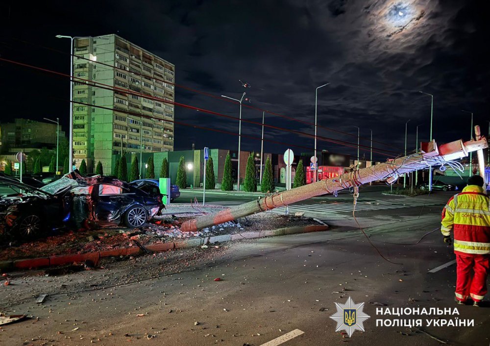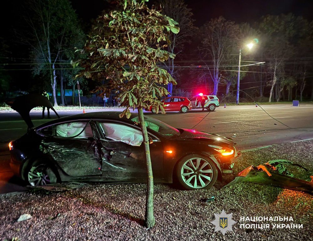 Близько 00:10 зіткнулися автомобілі Tesla під керуванням 20-річного місцевого жителя та Mercedes, за кермом якого перебував 22-річний житомирянин. Після удару Mercedes відкинуло в електроопору.