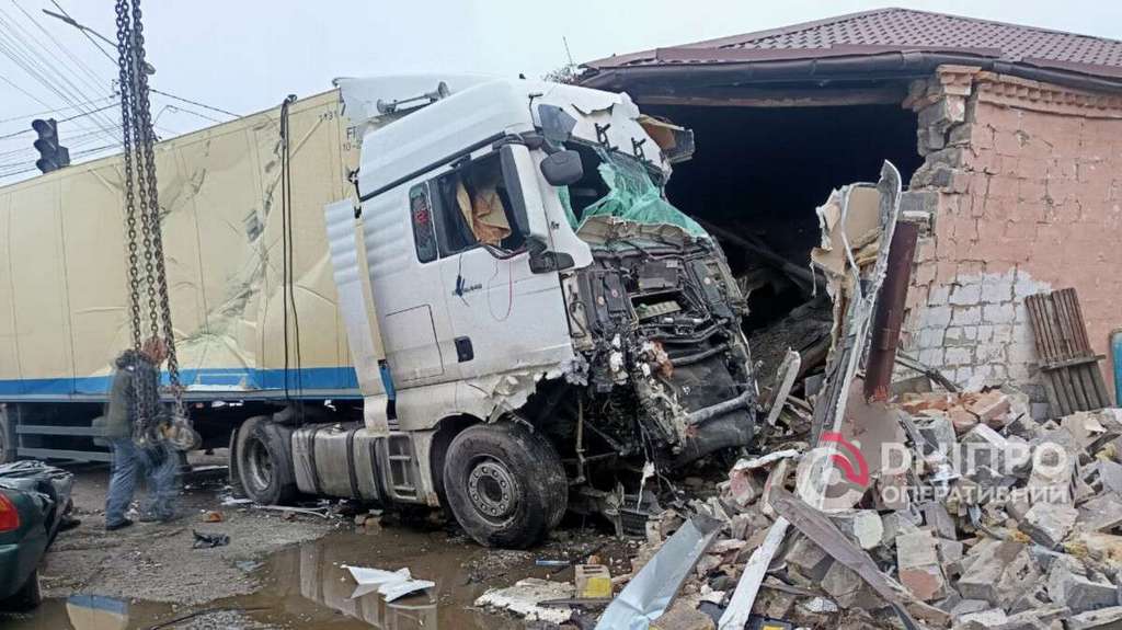 Свідки стверджують, що водій фури різко загальмував, щоб уникнути зіткнення. В результаті транспорт занесло, після чого він перекинувся, в’їхавши в поруч розташовану будівлю.