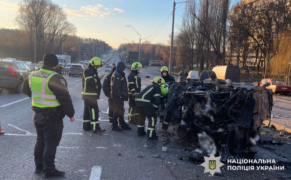 Попередньо встановлено, що близько 14:40 водій Porsche Cayenne, рухаючись Берестейським проспектом, скоїв зіткнення із бетонною огорожею, внаслідок чого авто перекинулось.