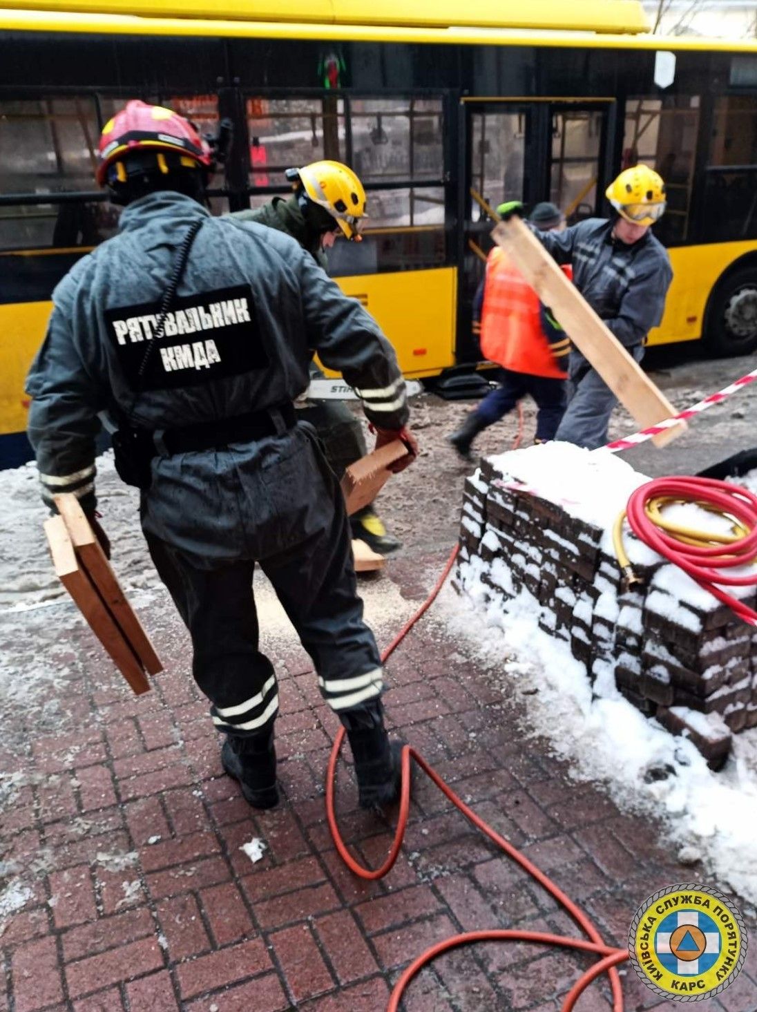Працював оперативний підрозділ четвертого аварійно-рятувального взводу (АРВ) у кількості 6 осіб. Також до робіт залучили 2 одиниці техніки КАРС «Київської служби порятунку».