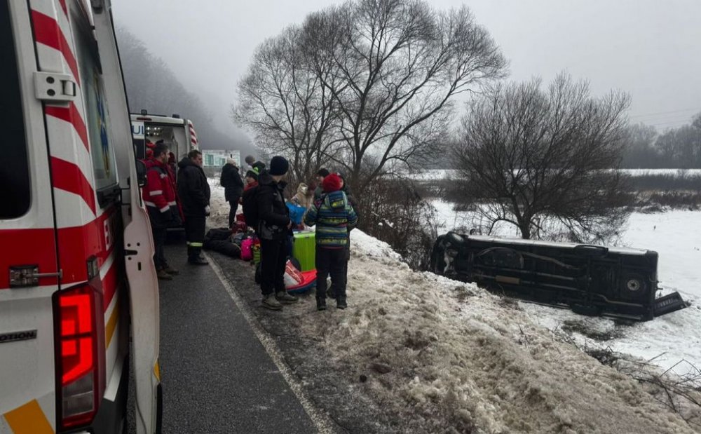 На Закарпатті через ожеледь з’їхав із траси та перекинувся мікроавтобус, у якому їхали діти.