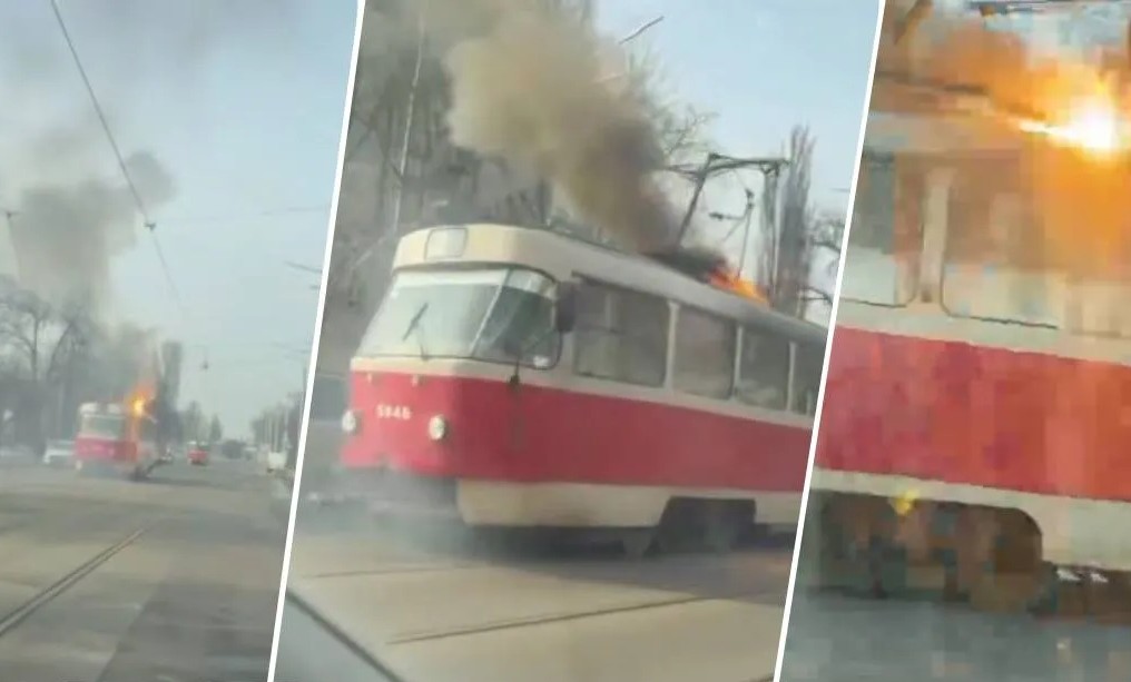 У Києві посеред білого дня загорівся трамвай (ФОТО)