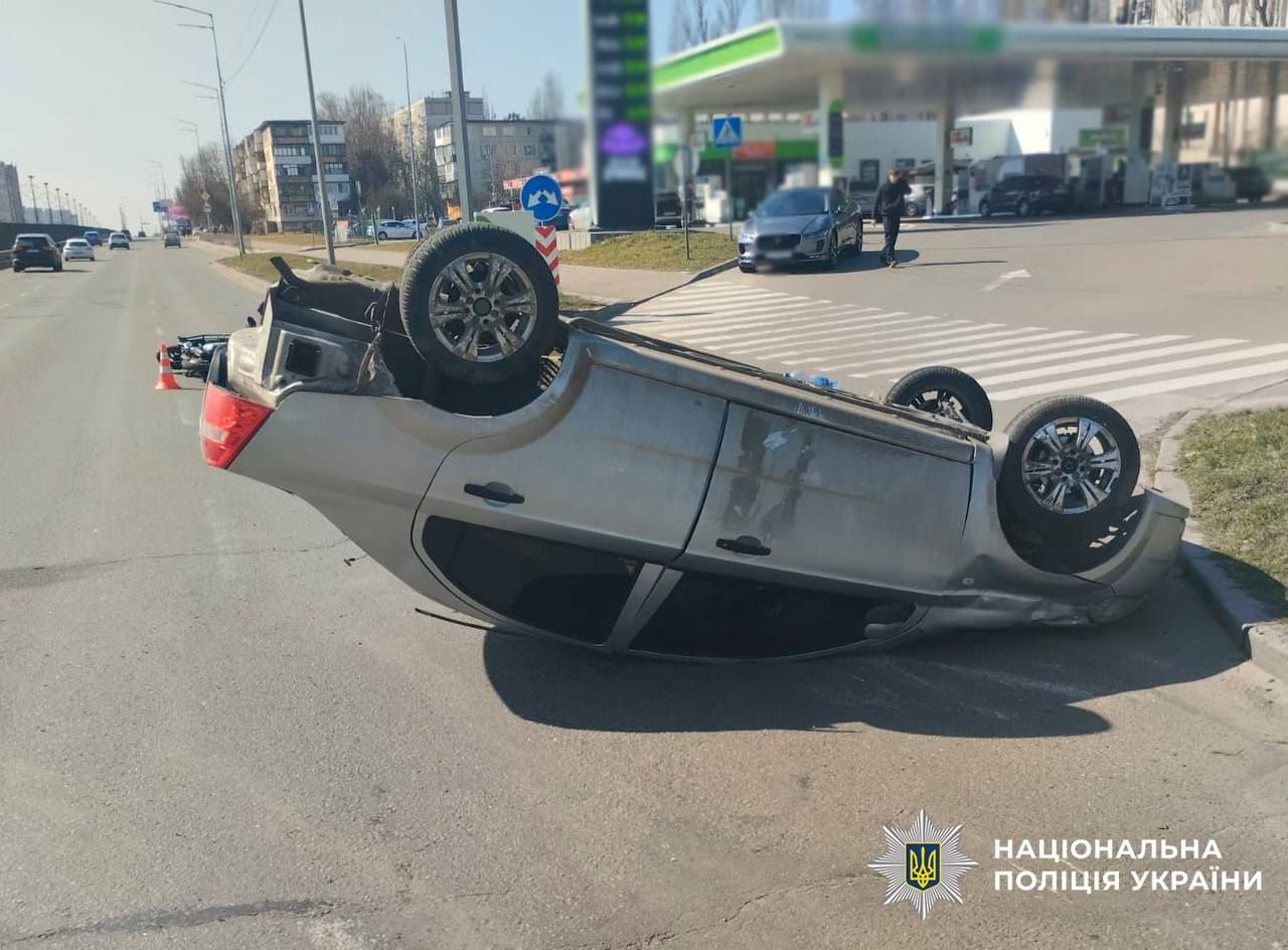 Через п’яного водія на Борщагівці сталась ДТП з переворотом (ФОТО)