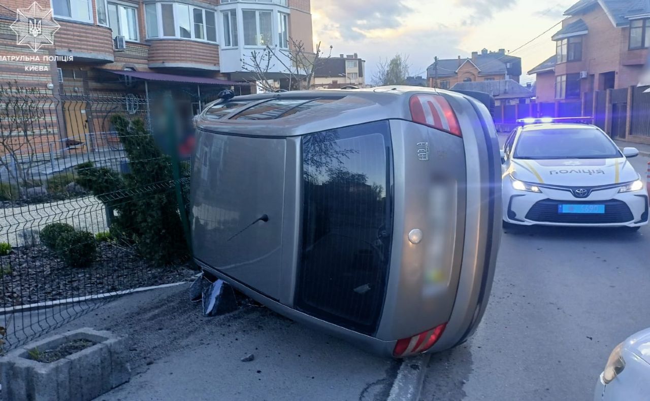 У Києві п’яний водій в’їхав у паркан і перевернувся