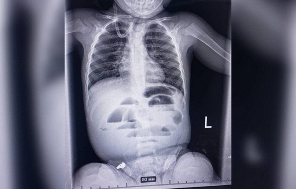 Малюка госпіталізували з підозрою на кишкову непрохідність. Під час обстеження рентген показав характерні ознаки цього стану, тож команда хірургів, анестезіологів і педіатрів ухвалила рішення негайно оперувати.