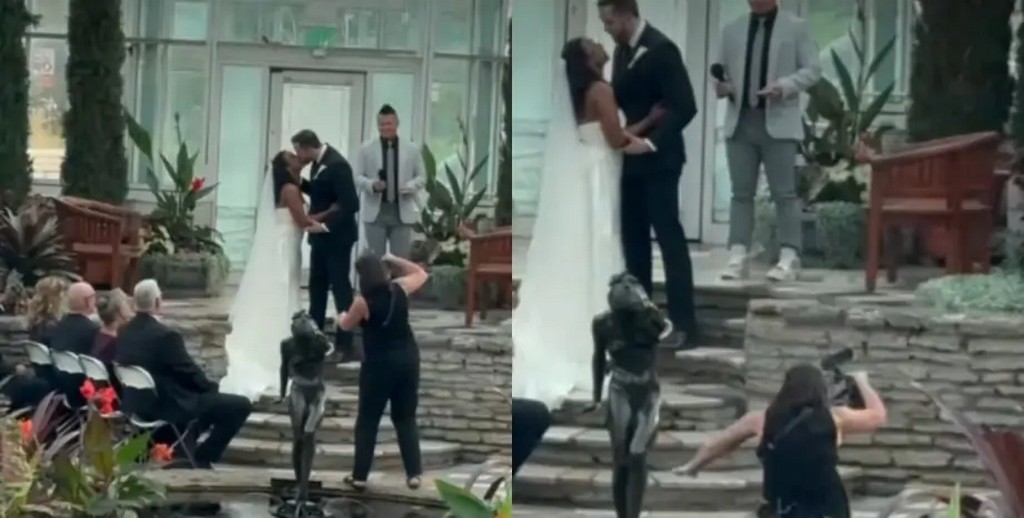 Фотограф упала у фонтан на весіллі, але продовжила знімати (ВІДЕО)
