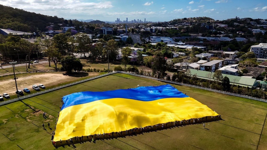 У місті Брисбен на сході Австралії представники української громади разом із місцевими активістами розгорнули найбільший у світі прапор України.