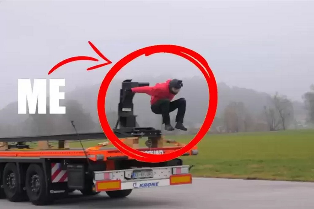 Чоловік зістрибнув із фури на швидкості 81 км/год і залишився на ногах (ВІДЕО)