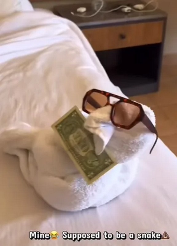 Дівчина майструвала крабів та змій, а персонал відповідав складними конструкціями на кшталт мавп, що звисали з вішаків. Ця іронічна дуель стала головною розвагою відпустки дівчини та зробила класну рекламу готелю.