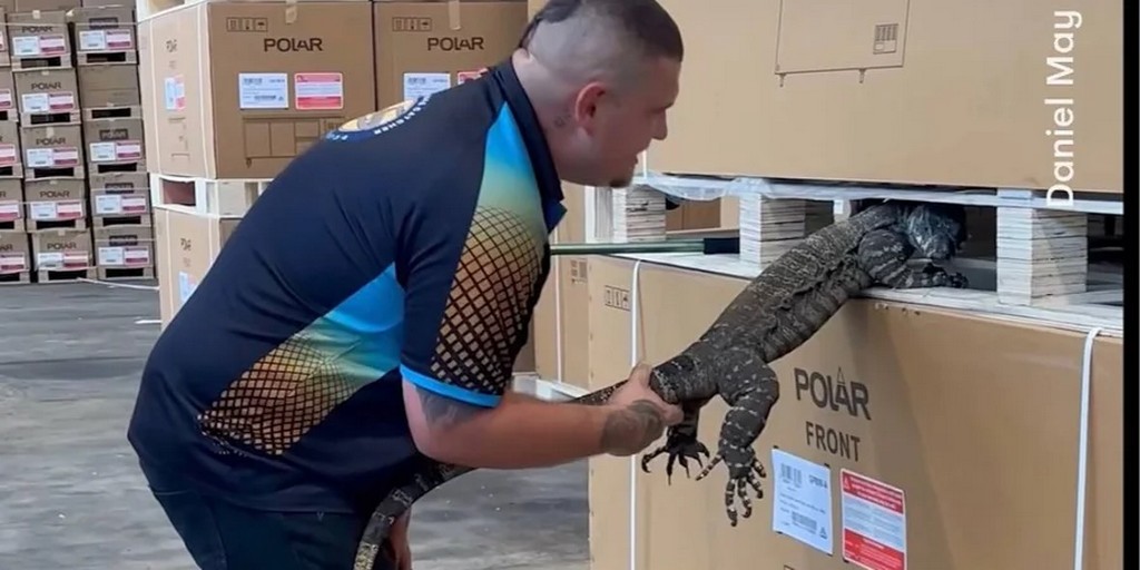 Працівники бару вирішили нарешті викликати професійного ловця варанів, щоб той вивів з закладу тварину. Деніел Мей застав рептилію за обіднім сном прямо між товарними палетами.