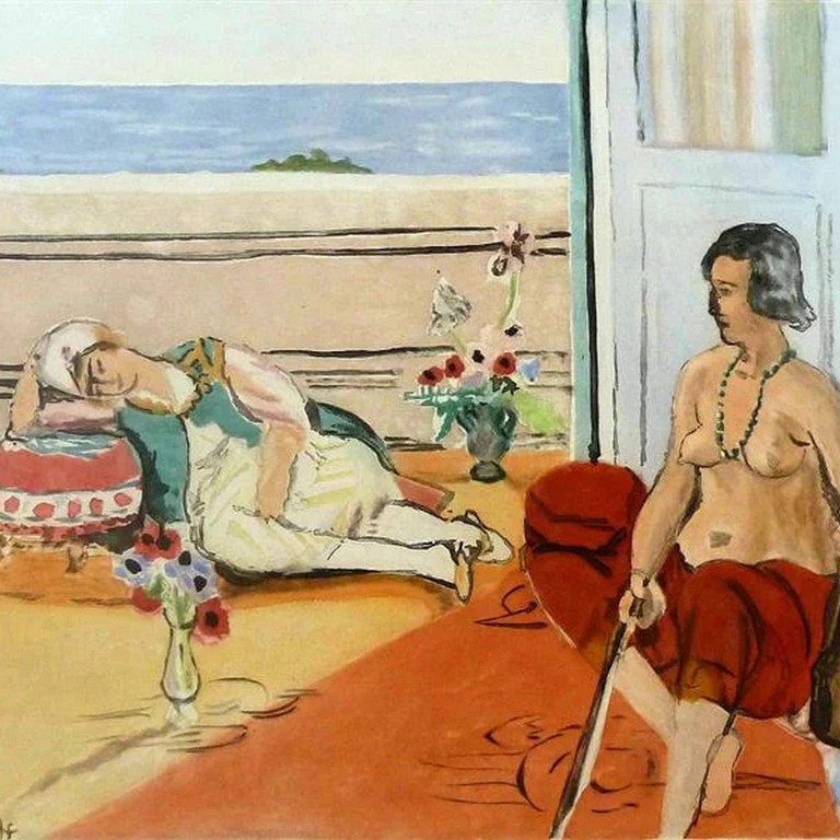 Матісс написав "Одаліску на терасі" у 1922 році. На картині зображені дві постаті: одна відпочиває на сонці, а інша тримає скрипку.