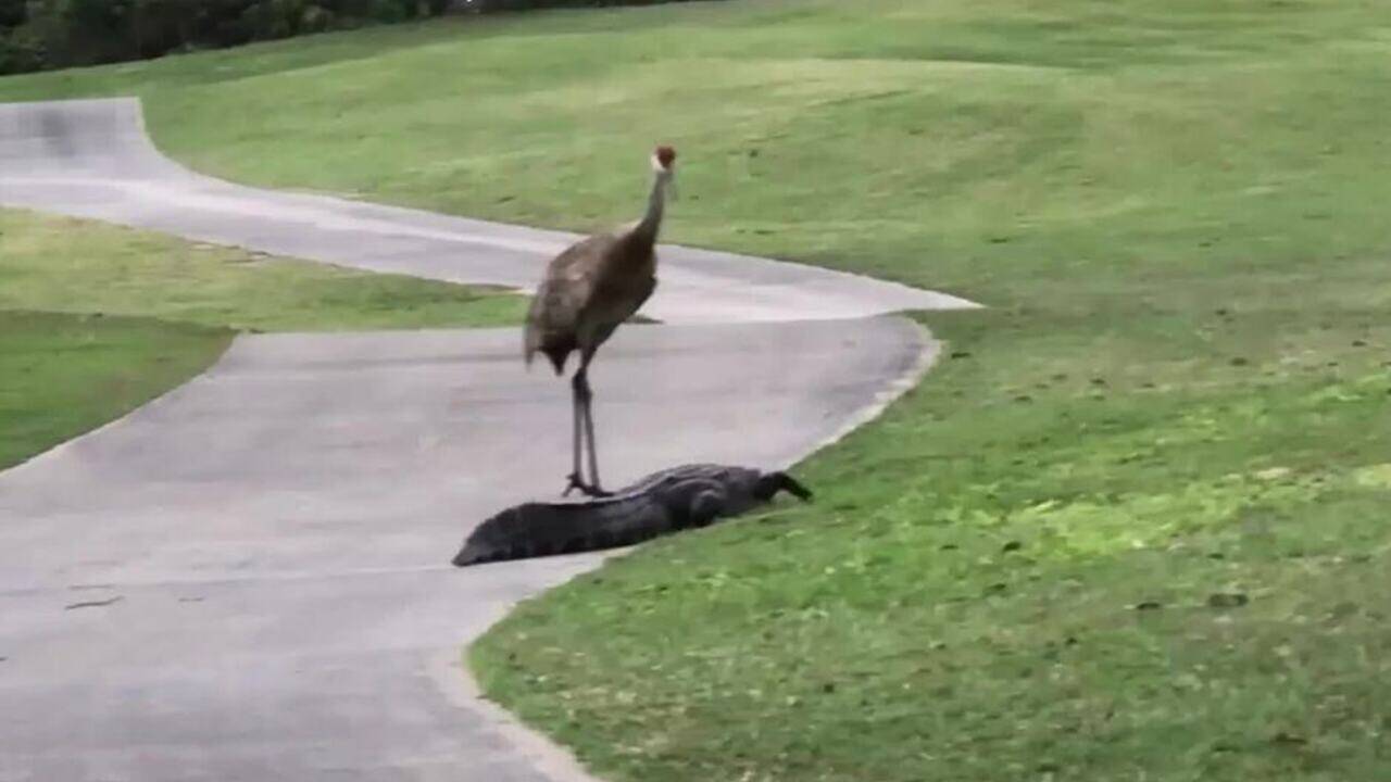 Журавель прогнав алігатора з поля для гольфу (ВІДЕО)