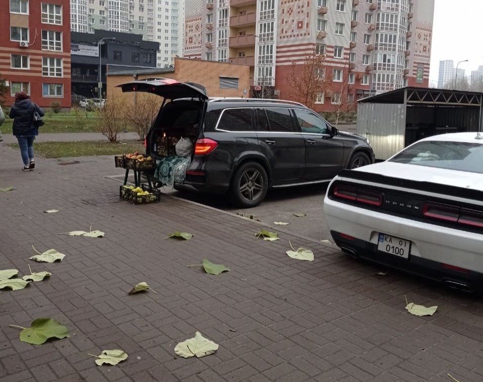 Курйоз на київських вулицях: із багажника Mercedes GLS продавали овочі та фрукти (ФОТО)