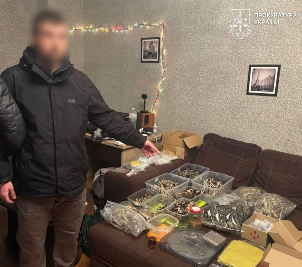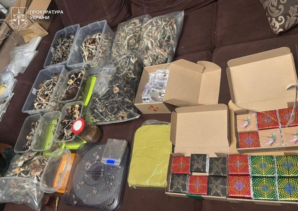 «Під час обшуку за місцем проживання чоловіка, поліцейські вилучили плитки шоколаду із вмістом псилоцибінових грибів, гриби в сухому вигляді, контейнери для вирощування грибів, зіп-пакети зі спорами грибів, ємності із вмістом міцелію, зіп-пакети з канабісом, психотропну речовину кратом та гроші, отримані за „товар“.