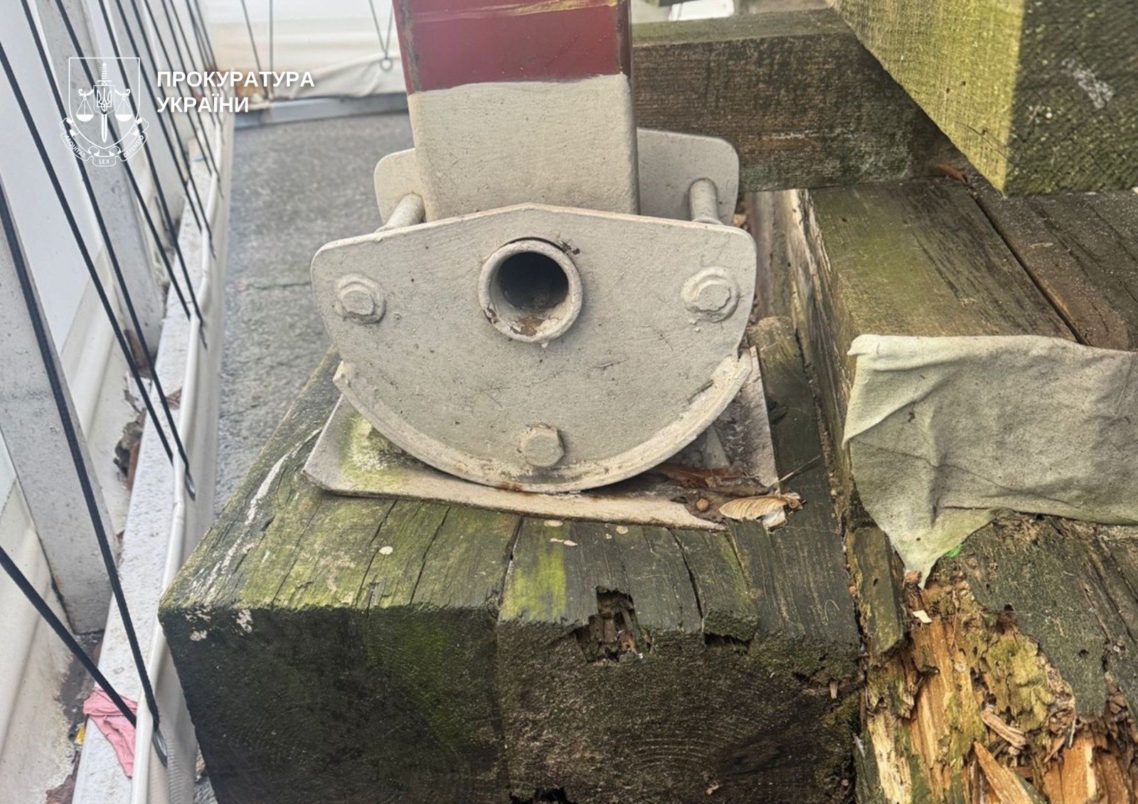 Зокрема, зафіксовано ознаки глибокого гниття деревини, руйнування її структури та сліди тривалого впливу вологи. Частина брусів частково зруйнована, має порожнини та кришиться під час механічного впливу. За висновками правоохоронців, такий стан конструкцій створює реальну загрозу життю та здоров’ю відвідувачів.