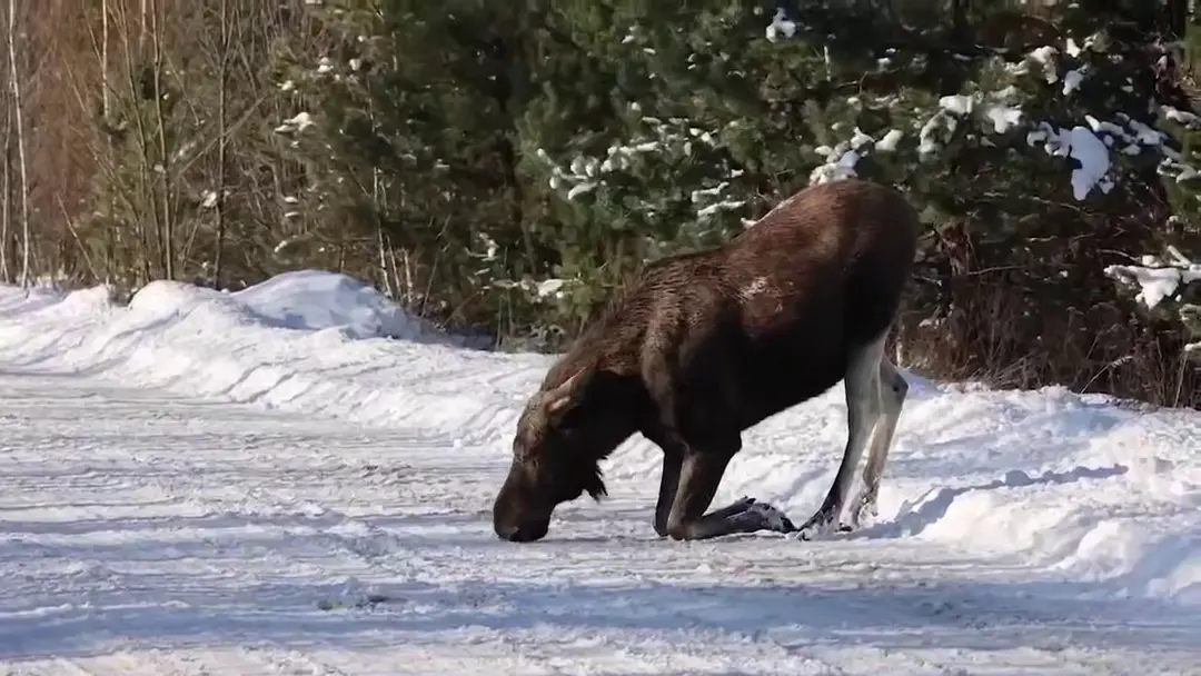 У Чорнобильській зоні зняли відео, як лось “навколішки” злизує сіль з дороги