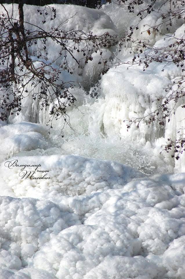 Світлини замерзлого водоспаду оприлюднив у Фейсбуці фотограф Володимир Тихович.