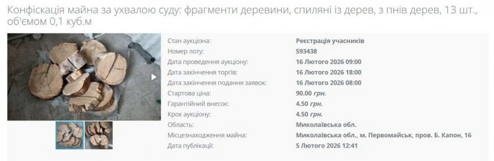 Про ситуацію стало відомо з платформи для подібних аукціонів Open Market. Державна виконавча служба конфіскувала у боржника розпиляний пень, який згодом був виставлений на продаж.