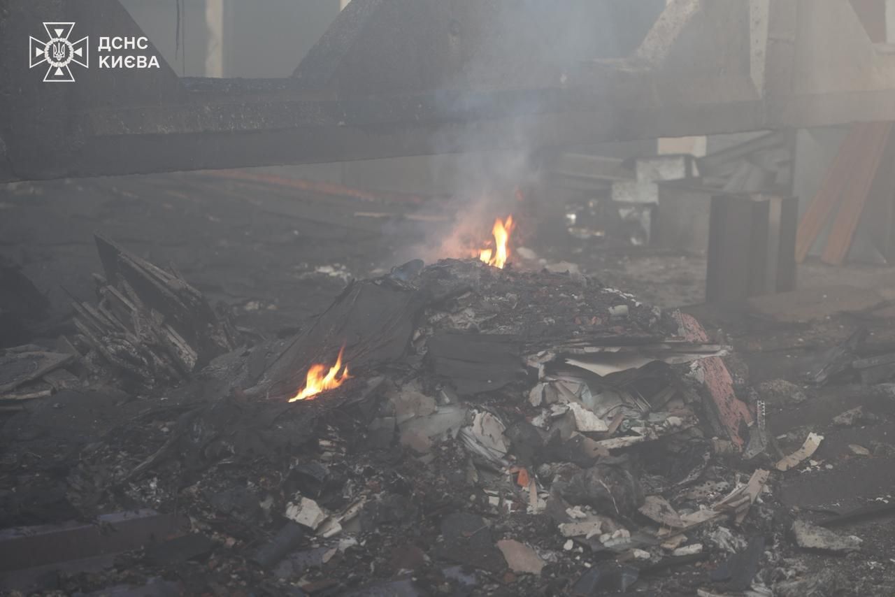 У Дарницькому районі, за попередньою інформацією, внаслідок падіння уламків БпЛА на дах чотириповерхової офісної будівлі пожежа на верхньому поверсі будівлі.