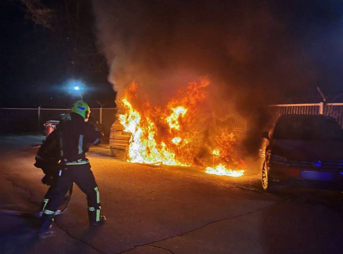 У Святошинському районі столиці ввечері 4 квітня спалахнула пожежа на парковці — вогонь повністю знищив припаркований Skoda Kodiaq, а ще дві автівки поруч отримали незначні пошкодження.