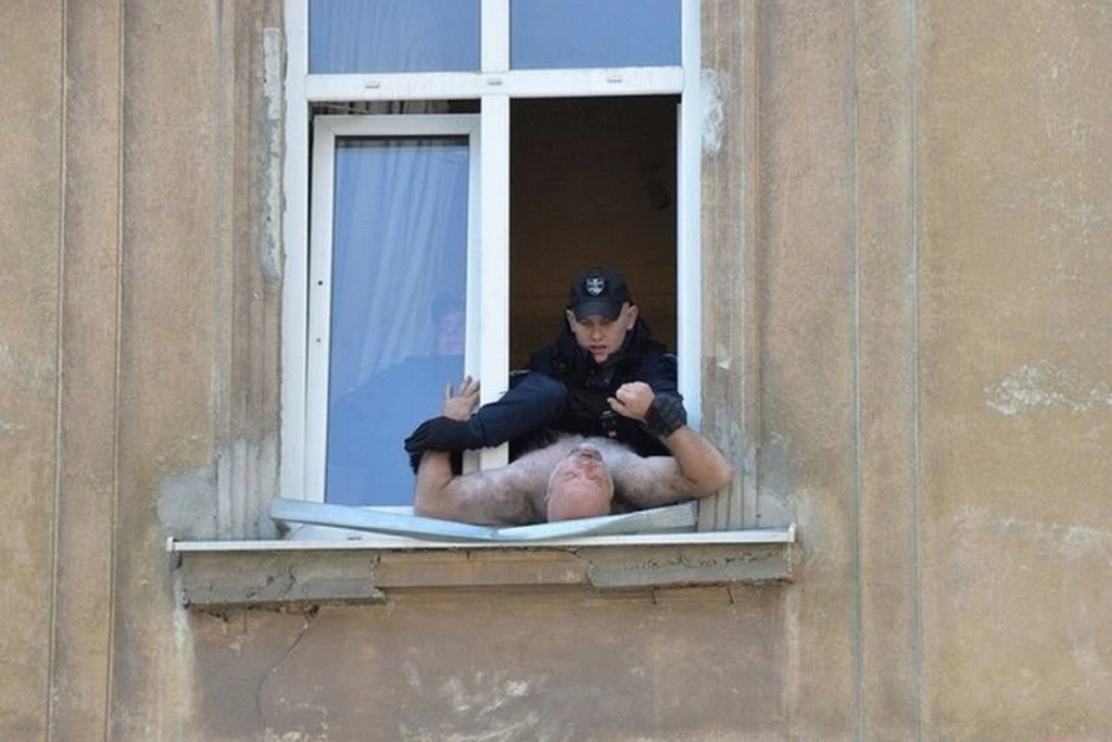 У самому серці Львова поліція та медики врятували іноземця, який у голому вигляді влаштував небезпечний перформанс на підвіконні будівлі.