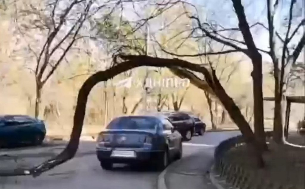 "Так виглядає везіння": у Дніпрі гілка впала і зависла над авто, утворивши «арку» (ВІДЕО)