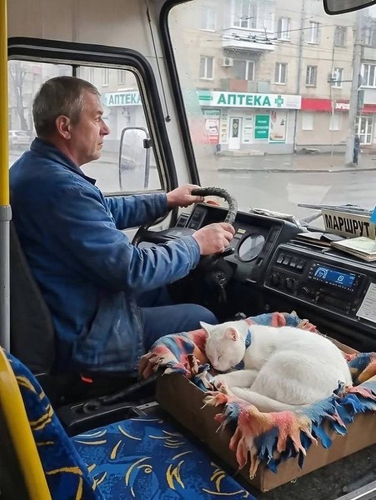 У Києві водій автобуса щодня бере з собою в рейс незвичного напарника — вуличного кота, який став справжнім улюбленцем пасажирів.