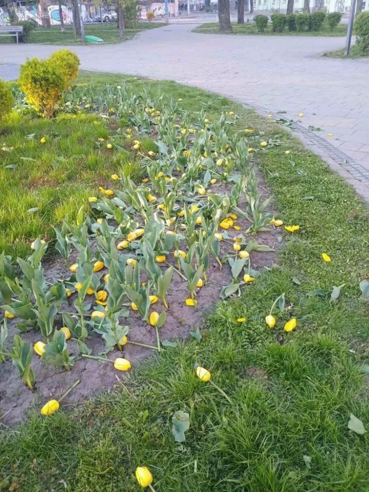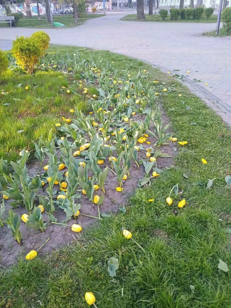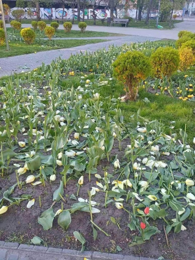 У Києві вандали витоптали та вирвали з корінням тюльпани на клумбах (ФОТО)