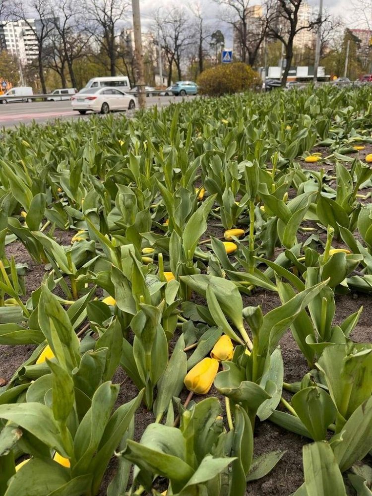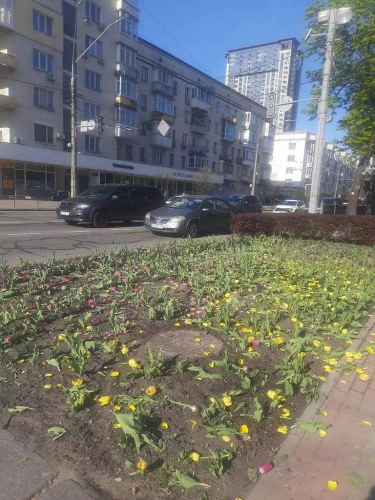Невідомі умисно пошкодили клумби з тюльпанами у Святошинському та Шевченківському районах Києва. Про це повідомила Київська міська державна адміністрація у середу, 29 квітня.